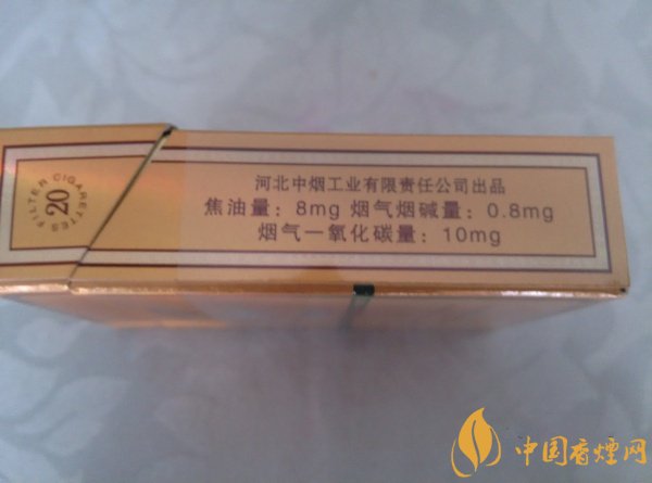 類型 :烤煙型 焦油量 :8mg 煙氣煙堿量 :0.8mg 一氧化碳量 :10mg