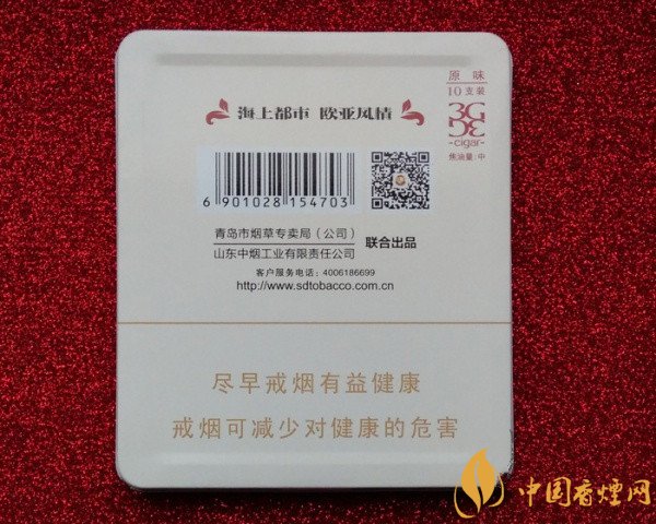 泰山(3G原味)采用3D鐵盒裝置,以青島五四廣場的建筑性標(biāo)志為主圖背景,突出青島這座海山都市獨有的文化底蘊。它的焦含量中等,煙香馥郁芬芳中夾帶著些許的甜潤感,吸味醇正細(xì)膩,簡約而時尚個性的外觀,深受時尚界煙客的喜愛。為了對這款泰山雪茄型香煙價格有一個詳細(xì)的了解,先來看看這款泰山雪茄多少錢一盒?據(jù)小編調(diào)查得知市場售價為25元/包。