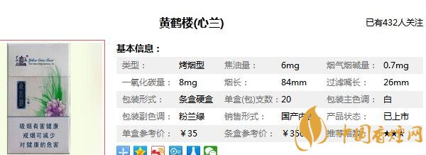這款黃鶴樓心蘭香煙,給人的感覺非常好,可以說在國產(chǎn)香煙中,能有如此氣質(zhì)的香煙產(chǎn)品,只有這一種,如此漂亮的煙盒,印刷精美絕倫,仿佛一個(gè)慧心蘭質(zhì)的領(lǐng)家女孩,那么在介紹黃鶴樓心蘭價(jià)格圖片之前,先來看看黃鶴樓心蘭多少錢一盒,這款香煙的價(jià)格為35元/包。