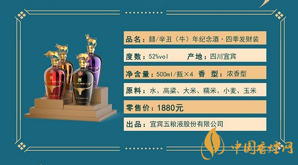 五糧液辛丑(牛)年紀念酒.四季發(fā)財裝,瓶蓋 頂立如牛,切割金屬牛以金屬材質(zhì)潛心鑄造四種靈敏聚財?shù)慕鹋P螒B(tài)!瓶身 金牛頭,采用浮雕工藝,將牛年傳統(tǒng)生肖結(jié)合,鴻運當頭照,宜賓五糧液有限公司:囍酒!瓶底 電鍍工藝質(zhì)感,細致浮雕防滑!五糧液辛丑(牛)年紀念酒.四季發(fā)財裝京東售價1880元。