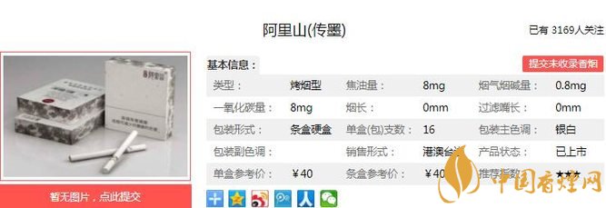 三、阿里山傳墨香煙參數(shù)