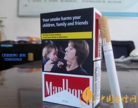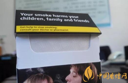 煙盒左右側(cè)面各印有黑框樣式的警示語句,也是后期歐盟版本萬寶路的煙盒包裝特點。