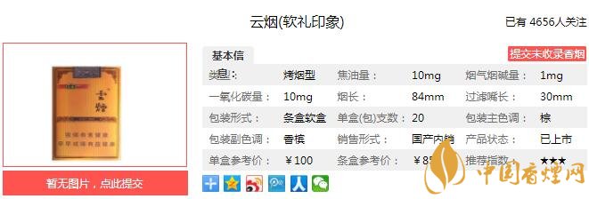 一、云煙軟禮印象香煙價(jià)格