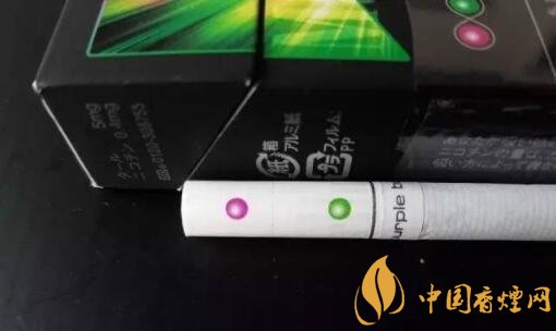 拿出一支香煙仔細(xì)端詳,煙支整體顏色很素雅,過濾嘴上的兩顆爆珠紫色的藍(lán)莓珠在靠尾端一點(diǎn),綠色的薄荷珠在濾嘴的另一端,一排降焦線相當(dāng)明顯,在不用強(qiáng)光看的情況下都清晰可見。