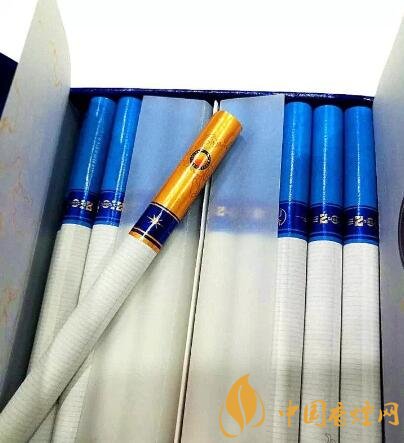 抽出幾支煙,看到過濾嘴的樣子,頓時(shí)覺得不同凡響。煙支居然采取少見的19+1搭配形式——1支金色嘴“煙王”和19支藍(lán)色嘴,馬上讓人聯(lián)想到,這必定是一款招待貴賓的好煙。