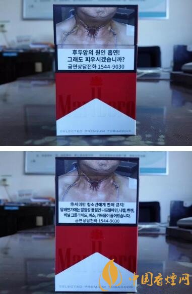 韓國的警示圖片,這是第一次見識到。警示圖文的設(shè)計,也與歐美等樣式差不多。都是圖片、吸煙有害健康,以及控?zé)煙峋€等內(nèi)容。從圖片的樣式來看,與東南亞一些國家和地區(qū)差不多,看起來還不算過于恐怖和惡心。