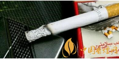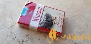 軟包包裝。還是云斯頓經(jīng)典的紅—白—紅三段式版面布局,上端紅色區(qū)域正中有金色飛鷹的圖案。老版雷諾茲版本則是一個金色王冠的圖案。這個版本,煙盒下部3/5的面積被忠告圖占據(jù)。比較老式的云斯頓版面配上彩印的忠告圖,視覺上有種特別的感覺。
