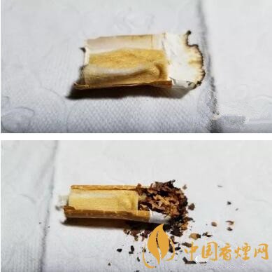 剖開濾嘴,絲束整段顏色偏黃,撕開絲束,內(nèi)部顏色均勻,煙氣的流速一直算比較恒定可控。煙氣的風(fēng)味恒定也來源于此。