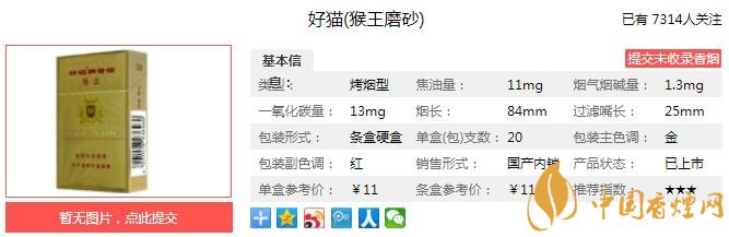 三、好貓(猴王磨砂)香煙參數(shù)