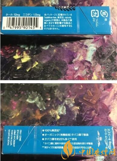 煙盒背面有一通日文介紹,大致說明了本煙草百分之百無添加的制作工藝,并對(duì)煙草進(jìn)行了優(yōu)良的培育。