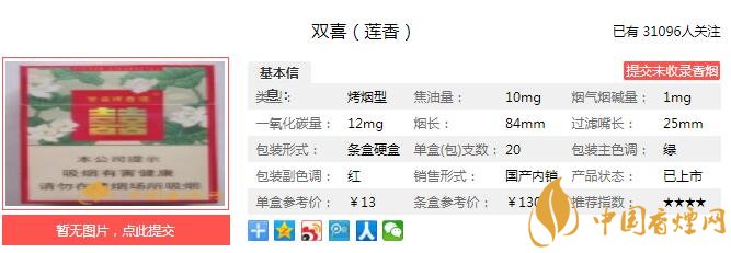 三、雙喜蓮香香煙參數(shù)