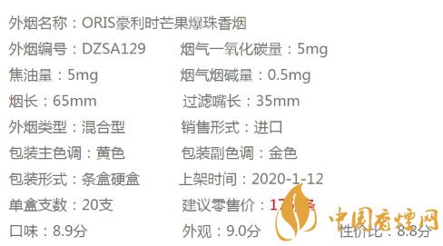 ORIS芒果味爆珠香煙參數(shù)