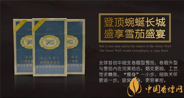 這款長城雪茄煙茄體長度94mm ,直徑7.88mm,環(huán)徑19.5mm,每個黃色的煙蒂上都印有藍色印花,其中兩條藍白色相間的環(huán)抱紋設計顯得長城醇雅薄荷煙很有層次感,綜黃色的茄身小巧精致卻又顯得纖細而挺拔。#p#副標題#e#