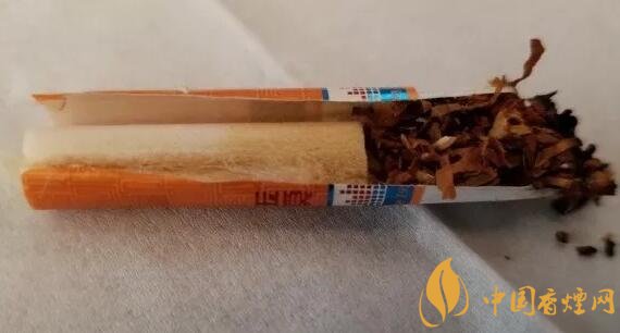 剖開濾嘴,從絲束的顏色變化來看,降焦孔是開在了絲束的前2/5部位。絲束的顏色變化均勻,降焦孔前段的顏色也不算太深,這個和添加了煙梗有比較大的關系,煙支自燃性良好,不用用力吸入,空氣的導入效果也不錯,煙氣的風味均衡保持良好。