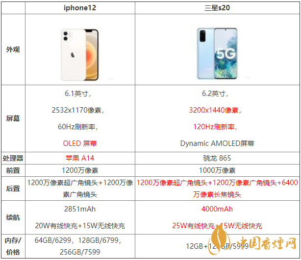 iphone12和三星s20哪款手機(jī)好 參數(shù)配置對(duì)比