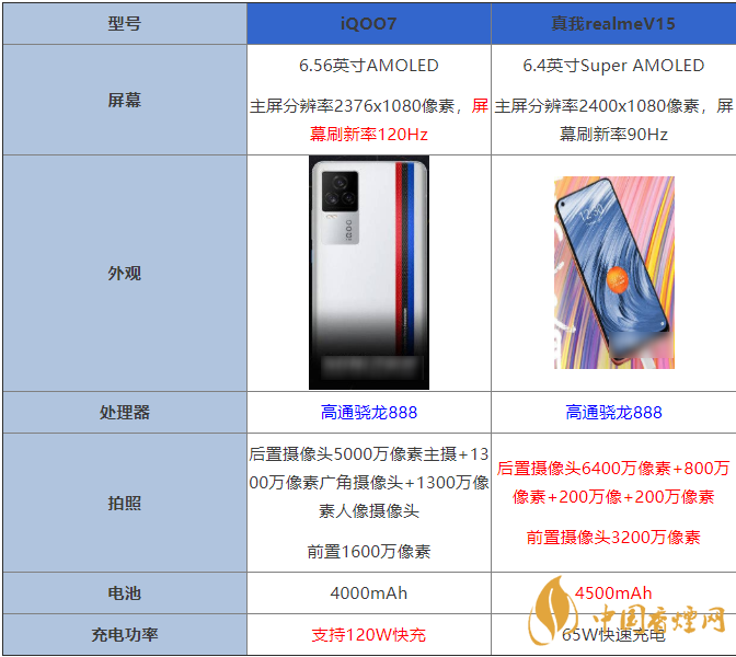 近期,迎來iqoo7和realmeV15 的發(fā)布,iQOO7和realme V15哪個好,iQOO7和realmeV15有什么差別?哪款手機更值得入手?下面香煙網(wǎng)小編為大家?guī)韎QOO7和realme V15的詳細參數(shù)對比,感興趣的朋友一起來看看吧!