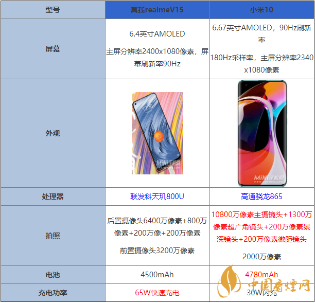 近期,迎來(lái)realmev15的發(fā)布,realme V15和小米10哪個(gè)好,realmev15和小米10有什么差別?哪款手機(jī)更值得入手?下面香煙網(wǎng)小編為大家?guī)?lái)realmev15和小米10的詳細(xì)參數(shù)對(duì)比,感興趣的朋友一起來(lái)看看吧!