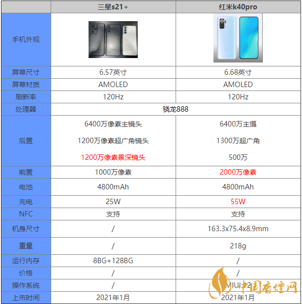 三星s21+和紅米k40pro都是有著相同的處理器,那么在三星s21+和紅米k40pro有什么區(qū)別?哪款手機(jī)更值得買?接下來香煙網(wǎng)小編將對三星s21+和紅米k40pro參數(shù)對比進(jìn)行介紹,感興趣的朋友一起來看看吧!