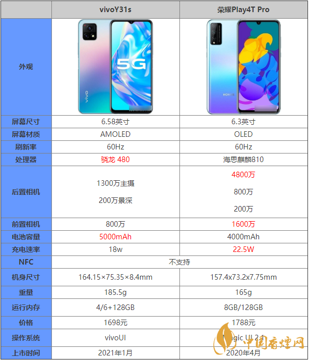 vivoY31s和榮耀Play4TPro都是定價中端手機,那么vivoY31s和榮耀Play4TPro有什么區(qū)別?哪款手機更值得入手?下面香煙網(wǎng)小編將對vivoY31s和榮耀Play4TPro參數(shù)對比進行介紹,感興趣的朋友一起來看看吧!