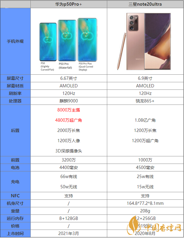 華為p50pro+和三星note20ultra參數(shù)對比 哪款手機更好