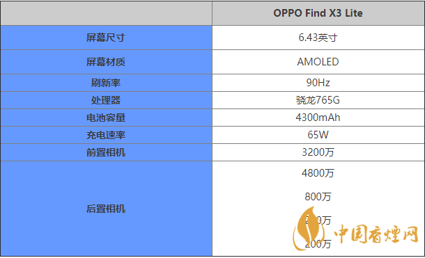 近期,即將迎來OPPO Find X3 Lite新機(jī)的發(fā)布,關(guān)于OPPO Find X3 Lite的信息已經(jīng)被曝光,那么OPPO Find X3 Lite的參數(shù)配置是怎樣的呢,下面香煙網(wǎng)小編將對OPPOFindX3Lite參數(shù)配置詳情進(jìn)行介紹,一起來看看吧!