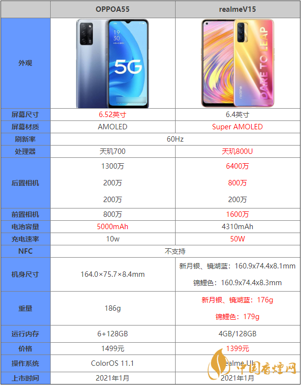 OPPOA55和realmeV15參數(shù)對比 哪款手機(jī)更值得入手