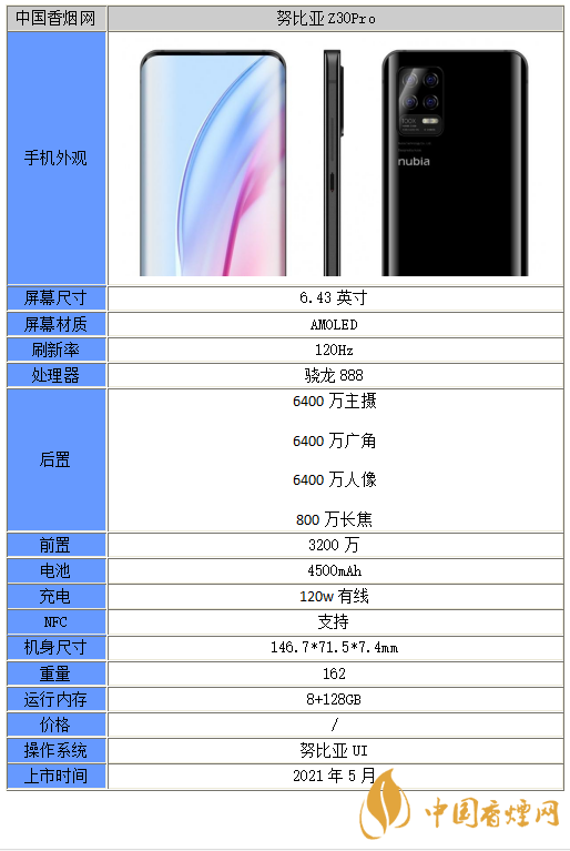 以上就是小編收集到的努比亞z30Pro手機怎么樣-努比亞z30Pro參數(shù)配置一覽的相關(guān)內(nèi)容,以上內(nèi)容均來源于網(wǎng)絡(luò),僅供參考,一切以實際為準,更多最新數(shù)碼資訊請關(guān)注香煙網(wǎng)。