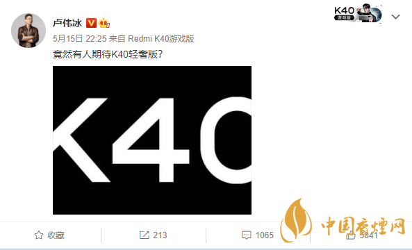 近期,盧偉冰發(fā)布微博表示居然有人期待紅米K40輕奢版?