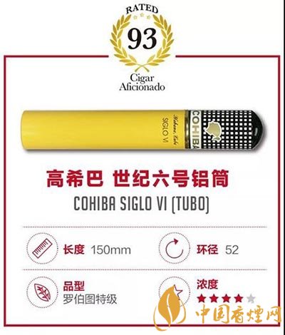 高希霸世紀六號規(guī)格獨特,只出現(xiàn)在這個古巴雪茄品牌中。強壯和精致外觀,這世紀六號散發(fā)出奶油,皮革,可可和甜香料的味道。