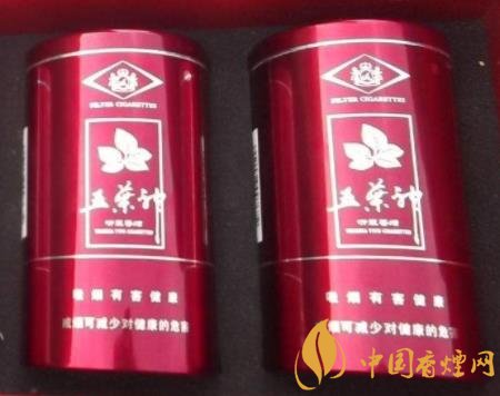 五葉神(典藏罐裝)106元/盒。香煙為五葉神品牌旗下的一款香煙。罐裝,紅色底,銀色文字,鋁合金材料,觀感雅致大方 優(yōu)秀配方工藝師配方,手工選取光潔無暇3年自然醇化期煙葉 神農(nóng)液生物減害技術(shù)。煙氣中亞硝胺,苯并芘,自由基等有害物質(zhì)綜合降幅達到63.8%。
