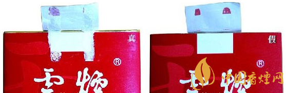 真品卷煙的拉帶頭呈半橢圓形,上下對(duì)稱,拉線上有點(diǎn)狀膠痕,俗稱“麻點(diǎn)”;假煙拉帶頭半橢圓形不規(guī)則,拉線上無“麻點(diǎn)”。