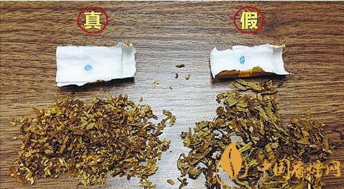 假冒:煙絲雜亂、切工粗糙、色澤蒼白,甚至發(fā)現(xiàn)了染色的紙屑。沒(méi)有烤煙香氣,更多的是青澀的煙葉味道。