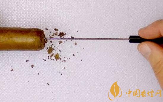 通氣針樣子很簡單,就是一個(gè)帶有把手的細(xì)長的金屬針,有些針的頭部帶有螺旋或者鋸齒。使用的時(shí)候一手拿著雪茄,一手拿著通氣針,用針插進(jìn)雪茄頭部稍微旋轉(zhuǎn)一下,插進(jìn)去的深度一般到雪茄中部就可以了,根據(jù)透氣情況,可以多插幾次,一般透氣性就能有很好的解決了。那種頭部帶鋸齒的通氣針雖然對(duì)通氣有比較好的處理,可是非常暴力,幾乎是在雪茄內(nèi)部旋出一個(gè)洞,一般情況還是建議不要使用。