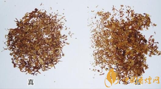 真煙煙絲成分為梗絲、膨脹葉絲、再造煙葉;假煙煙絲較碎、梗粒梗塊多、一般無(wú)膨脹葉絲。