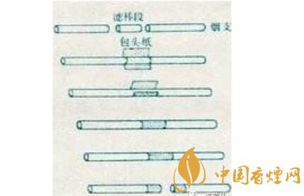 空腔濾嘴:空腔濾嘴是屬于二元復(fù)合濾嘴的一種,二元復(fù)合濾嘴通常是一段濾材為醋酸纖維,另一段為皺紋紙或生產(chǎn)過程中摻入添加劑(如活性炭)的醋酸纖維??涨粸V嘴是屬于后端為皺紋紙的那種,因為后端為中空,為了不使其塌陷,而醋酸纖維太軟,所以利用皺紋紙做成中空型。因其有一段規(guī)則的空腔, 形成一個低壓通道,抽吸時吸阻小, 能夠顯著提高對煙氣中焦油的過濾效率,有效地減少焦油和一氧化碳的釋放量。