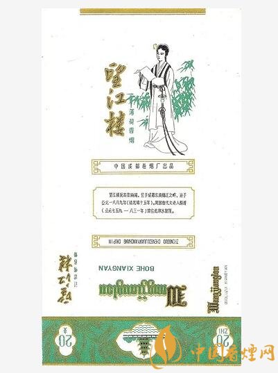 上世紀(jì)80年代,中國(guó)成都卷煙廠曾出品有“望江樓”煙標(biāo),該標(biāo)主版描繪了在郁郁蔥蔥的竹林映襯下,薛濤手捧“薛濤箋”正在思索的畫面;底標(biāo)位置印有“望江樓原名崇麗閣,位于成都東南錦江之畔,建于公元一八八九年(清光緒十五年)。我國(guó)唐代女詩(shī)人薛濤(公元七五九~八三一年)曾在此取水制箋”字樣。