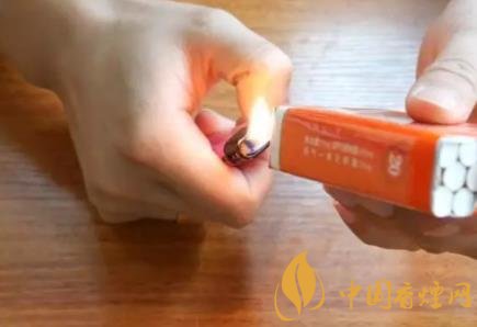 首先準(zhǔn)備一個(gè)打火機(jī),一般煙不離火,抽煙的人都會(huì)必備的,在香煙底部一側(cè)燙一個(gè)正方形缺口。