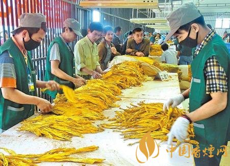 初分加工??竞鬅熑~在加工場所去青去雜后,按部位簡化定級(jí)成包,直接進(jìn)入煙站收購環(huán)節(jié)或復(fù)烤廠進(jìn)行后續(xù)加工。