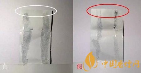 真煙封簽紙膠痕不貼邊,假煙主要識(shí)別點(diǎn):假煙小盒封簽紙膠痕較細(xì),膠痕延續(xù)到封簽紙邊緣。