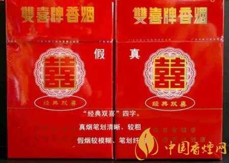 2、看小盒包裝的商標(biāo)印刷工藝:尤其是“經(jīng)典雙喜”這4個(gè)字,真煙筆劃清晰,字體要粗一些;而假煙的筆劃模糊,字體纖細(xì)。