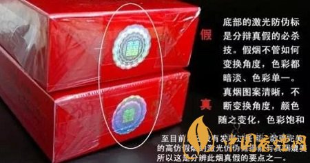 3、看底部的全息防偽標(biāo)識(shí):真煙防偽標(biāo)識(shí)圖案清晰,變換角度后顏色、圖案隨之變化,色彩飽和;而假煙的防偽標(biāo)識(shí),無(wú)論怎么變換角度,色彩暗淡、單一。