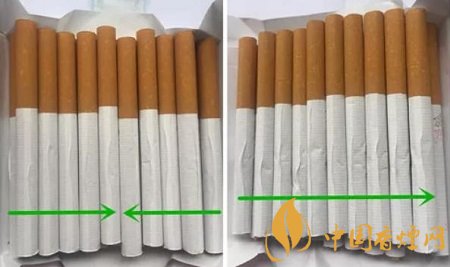 同一包卷煙內(nèi),真品卷煙煙支卷接紙有兩個相反的搭口方向;而假煙的煙支卷接紙搭口方向均為同一個朝向。