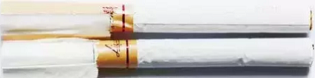 真品商標(biāo)紙采用銅版紙,凹印印刷,正面“長(zhǎng)過濾嘴香煙”字體邊緣有明顯的鋸齒狀,“利群”字體筆畫較粗;假煙商標(biāo)紙采用高清掃描仿制膠印印刷,正面“長(zhǎng)過濾嘴香煙”字體邊緣較光滑無鋸齒狀,“利群”字體筆畫明顯偏細(xì),商標(biāo)紙印刷工藝與真品特征存在明顯差異。(左真右假)