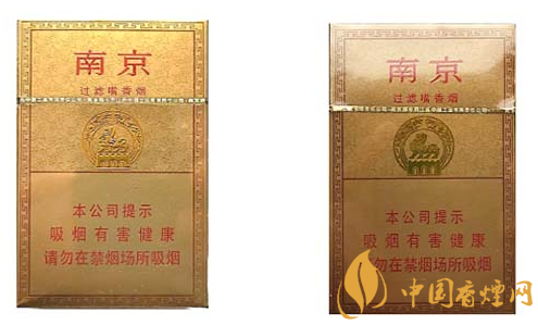 南京(精品)商標(biāo)設(shè)計通體以黃色系,古南京城墻、辟邪、代表南京的龍、虎為整個商標(biāo)圖案題材,在金卡紙上以南京市市花為底紋圖案,樸素、大方、尊貴。煙味香濃、芳香四溢、回味飽滿?,F(xiàn)就該卷煙小盒鑒別方法介紹如下: