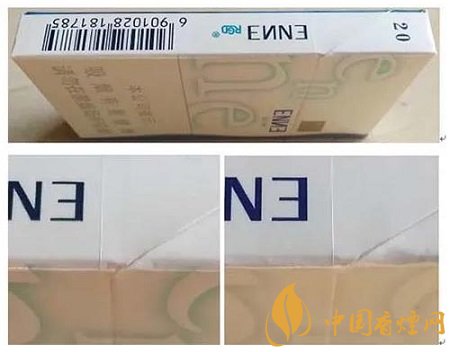 (4)真品卷煙“enne”小寫字母筆畫立體感強(qiáng)。該款假冒卷煙小寫字母筆畫無立體感。