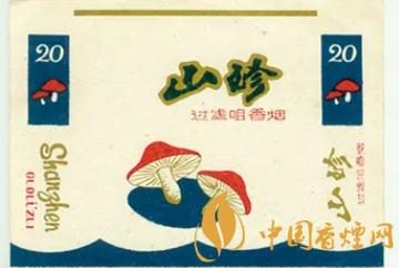 位列草菇、平菇、白蘑菇之上的香菇則是世界第二大食用菌,這種生長(zhǎng)在木材上的真菌隸屬于擔(dān)子菌綱、傘菌目、口蘑科、香菇屬,俗稱(chēng)香菌、香蕈、冬菇、平莊菇。素有“山珍之王”“真菌皇后”之譽(yù)的香菇,偶爾植根于煙標(biāo),如湘西自治區(qū)民族卷煙廠(chǎng)出品于上世紀(jì)80年代的“山珍”(圖6)煙標(biāo),主版就突出了兩個(gè)香菇的形象。