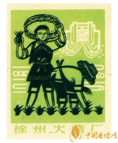 國榮火柴廠出品于同期的“大地牌”(圖3)火花,在朝霞滿天間有白云,以及數(shù)座民居背景的映襯下,突出了一名頭戴斗笠的農(nóng)夫,一手扶犁一手驅(qū)牛辛勤翻耕農(nóng)田的場面。