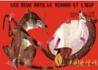法國著名煙草經銷機構塞塔公司推出過系列伊索和拉封丹寓言卡通火花,其中的“鼠火花”內容詼諧,十分有趣?!峨p鼠、狐貍和雞蛋》(圖二)讓外界不要低估老鼠的智慧。狡猾的狐貍原本認定老鼠搬不了雞蛋,不料兩個耗子狡黠協(xié)作,一個躺倒抱住雞蛋的同時直接讓伙伴拽拉著它的尾巴,彼此安然回洞!《老鼠和牡蠣》(圖三)是說被誘惑和貪婪的后果很嚴重:內陸之鼠初到海邊,看到張殼做日光浴的牡蠣新奇不已,竟一頭伸進殼中欲以秀色為餐,結果……即刻就要閉合的美艷景色不會免費?。?/p>