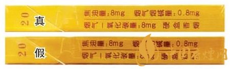 真煙鋼印為機器動態(tài)打印,整體鋼印較深且筆畫較細(xì),每個鋼印間距不等,高低不平;假煙鋼印一般為手工靜態(tài)打印,整體鋼印較淺、較模糊。