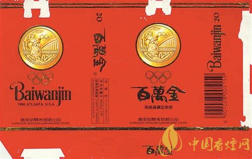 1996年,第26屆夏季奧運(yùn)會(huì)在美國(guó)亞特蘭大舉行。上世紀(jì)90年代,廣東韶關(guān)卷煙廠出品了“百萬(wàn)金”煙標(biāo)(圖②)。該煙標(biāo)以紅色為底色,主、副版上均印有金燦燦的奧運(yùn)金牌以及奧運(yùn)五環(huán)圖案,副版上還印有“1996 ATLANTA USA”字樣。